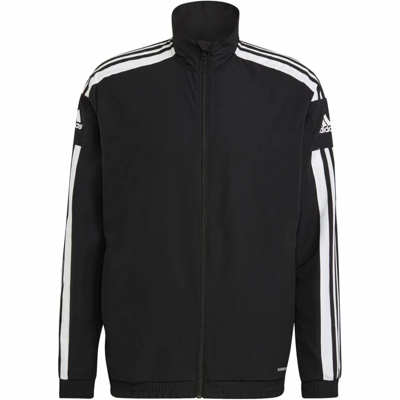 De adidas Squadra 21 Presentation Jack Het adidas Squadra 21 Presentation Jack valt op door de simplistische en sportieve stijl. Dit jack heeft een minimalistisch ontwerp met hoge hals en kenmerkende adidas strepen en logo. Het jack biedt comfort door de reguliere pasvorm met elastische manchetten en zoomen. De materialen zijn gerecycled en voeren zweet af, zo begin jij fris aan iedere uitdaging.
