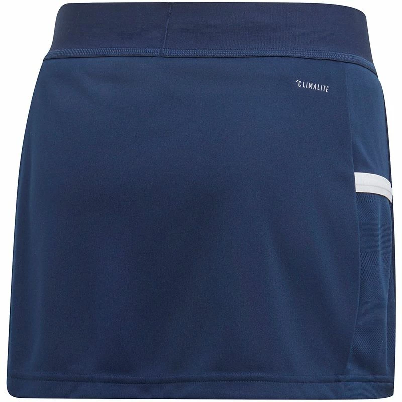 De adidas T19 Skort Meisjes is afkomstig uit de T19 collectie van adidas. Deze collectie bevat moderne teamkleding die is ontworpen voor spelers van ieder niveau. De kleding zorgt voor uitstekende ventilatie en beschikt over een hoge duurzaamheid. Het rokje heeft een een elastische tailleband en geïntegreerde compressieshort die zorgen voor een prettige pasvorm met extra draagcomfort. Het gebruikte materiaal is licht van gewicht en zorgt voor uitstekende zweetafvoering. Het rokje is afgewerkt met het adidas logo op de voorzijde. De verwerkte ClimaCool technologie is een combinatie van prestatie stoffen, open mesh en ventilatiekanalen die koele lucht de kleding in laat stromen, en warmte en zweet naar buiten. Hierdoor blijf je droog, comfortabel en presterend op je top in de meest verhitte wedstrijden.